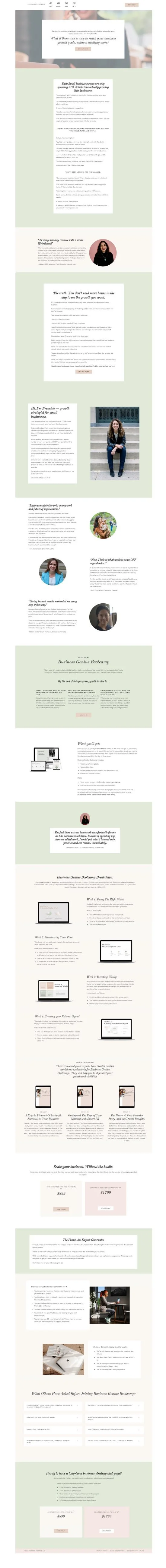 Frenchie Ferenzci, business strategist who has helped start-ups like The Wing grow from (3,000) to (12,000) members, put her knowledge into Business Genius Bootcamp, her signature course. She had sold several spots the first round, but was looking to increase conversions at an increased price with fewer sales calls. Her original sales page was written by a different copywriter and she came to me to to strategize and upgrade her current sales page into one that attracts her ideal customers and puts them in the perfect positon to click ‘buy’.